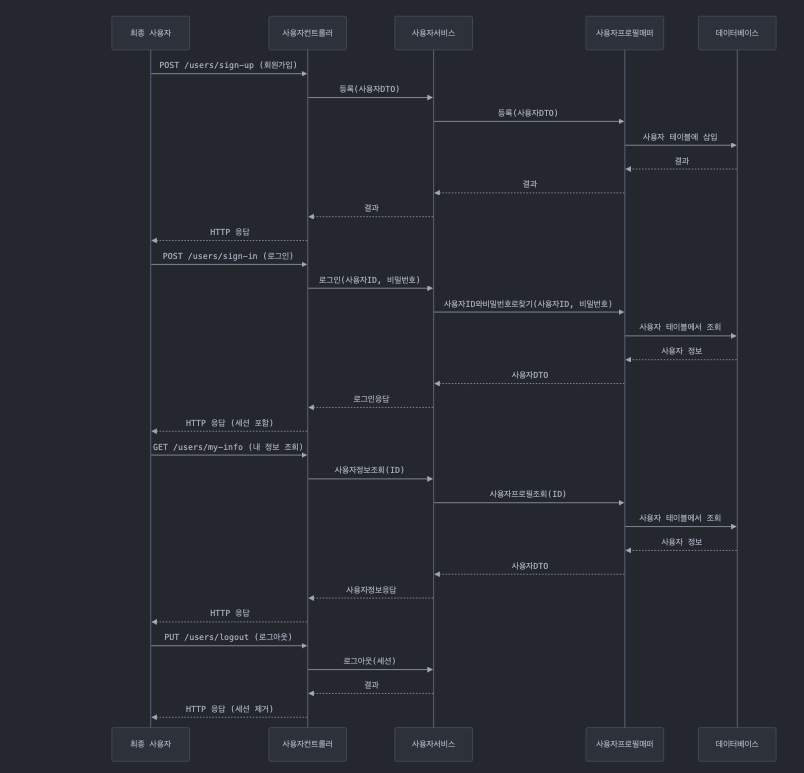 - 로그인 (POST /users/sign-in): 사용자 인증을 수행하고 세션을 생성합니다.
