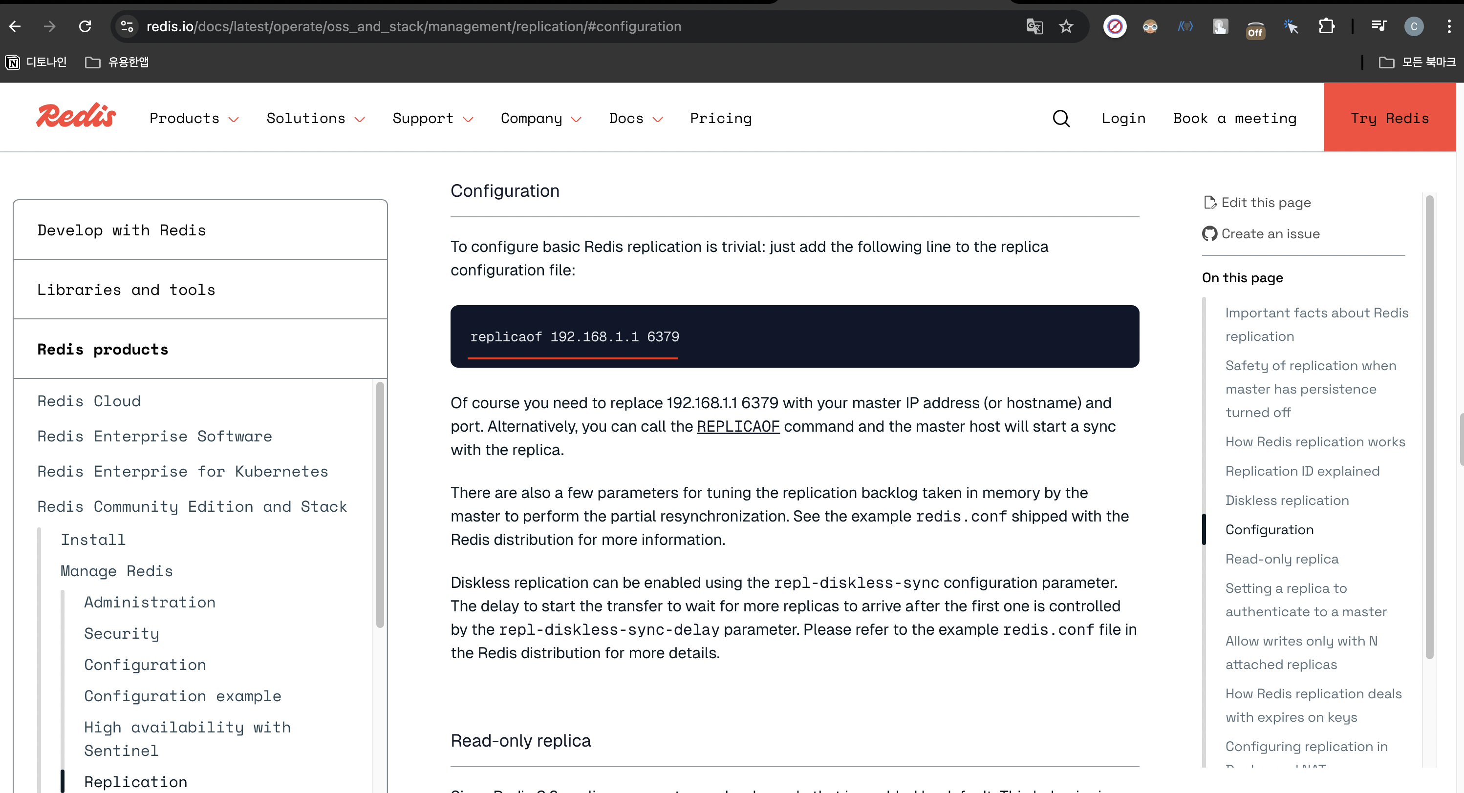 redis 공식 홈페이지에서 replication section으로 이동하여 그 방법을 알아보겠습니다.