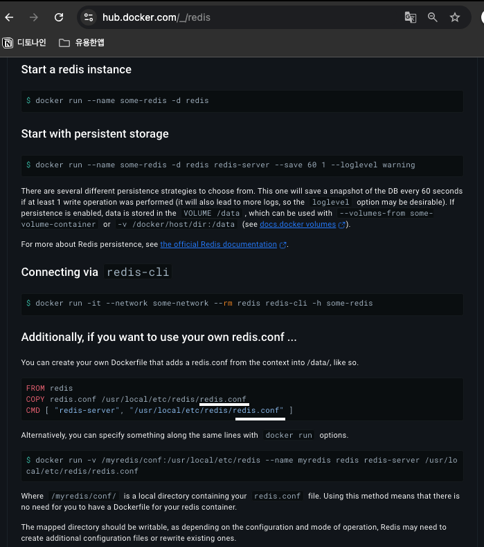 우선 docker hub에서 redis 페이지로 가봅니다.