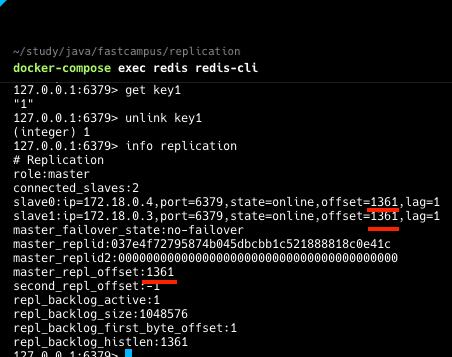 redis-cli를 통해서 replication 접속 정보를 더 상세히 살펴 보겠습니다.
