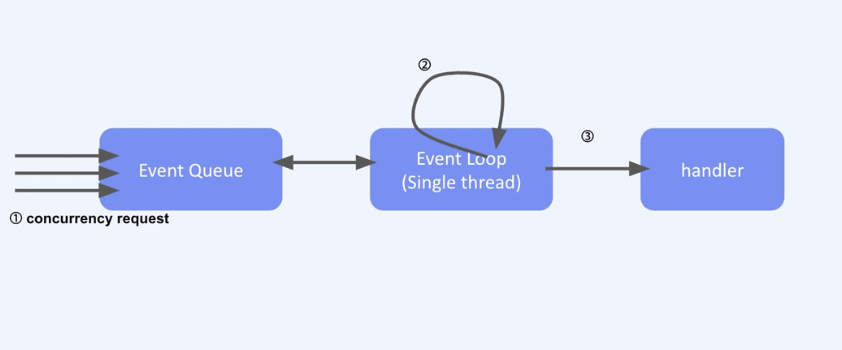 • Event Loop는 각각의 요청을 Handler로 전달합니다. 이 핸들러는 실제 요청을 처리하는 로직을 포함하고 있습니다.