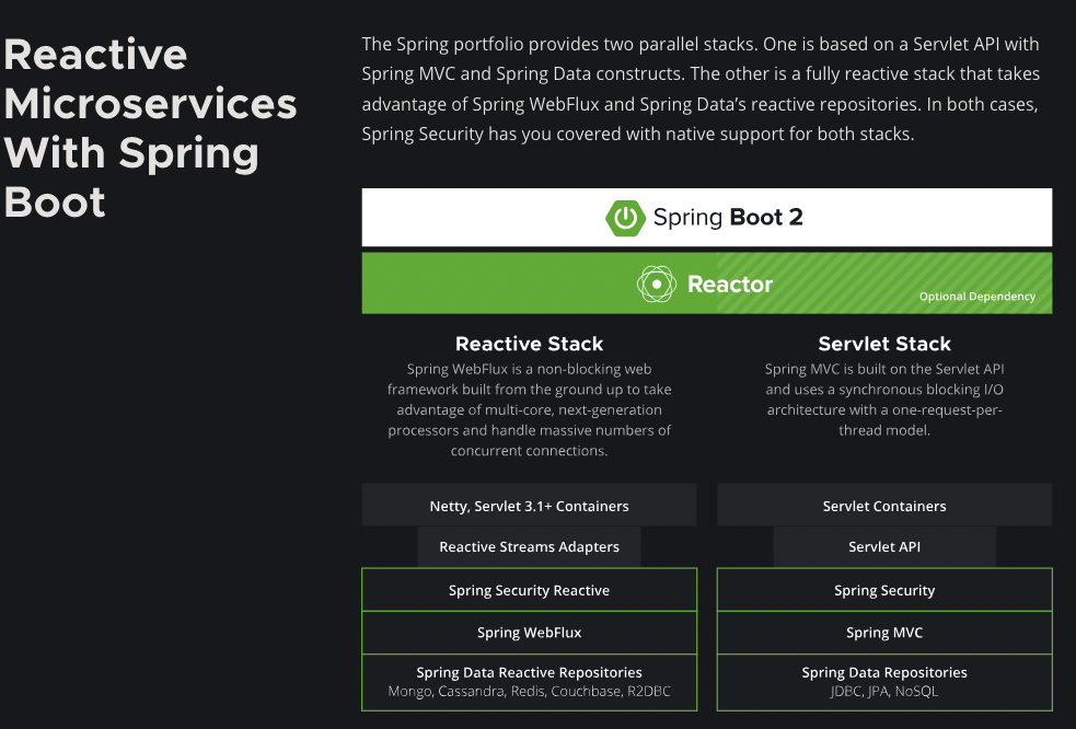 reactive stack은 spring boot2 버전부터 지원되고 있습니다.