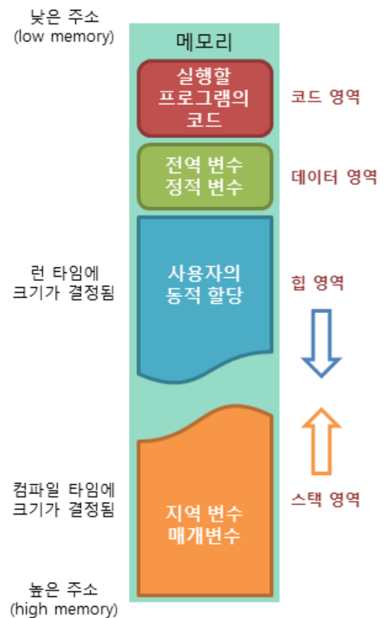 따라서 컴퓨터의 운영체제는 프로그램의 실행을 위해 다양한 메모리 공간을 제공하고 있죠.